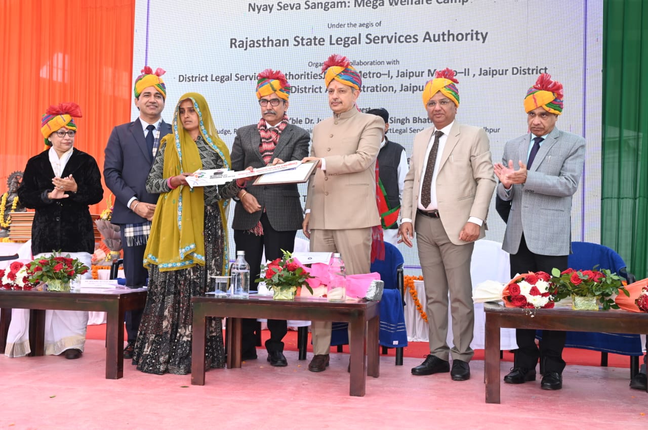 राजस्थान राज्य विधिक सेवा प्राधिकरण के तत्वावधान में जिला विधिक सेवा प्राधिकरण जयपुर एवं जिला प्रशासन के सहयोग से नवलखा स्टेडियम, आमेर में न्याय सेवा संगम मेगा जन कल्याण शिविर का आयोजन किया गया। शिविर के मुख्य अतिथि राजस्थान उच्च न्यायालय के माननीय न्यायमूर्ति डॉ. पुष्पेन्द्र सिंह भाटी रहे, जबकि विशिष्ट अतिथि न्यायाधीश एवं अध्यक्ष राजस्थान उच्च न्यायालय विधिक सेवा समिति श्री इन्द्रजीत सिंह उपस्थित रहे।