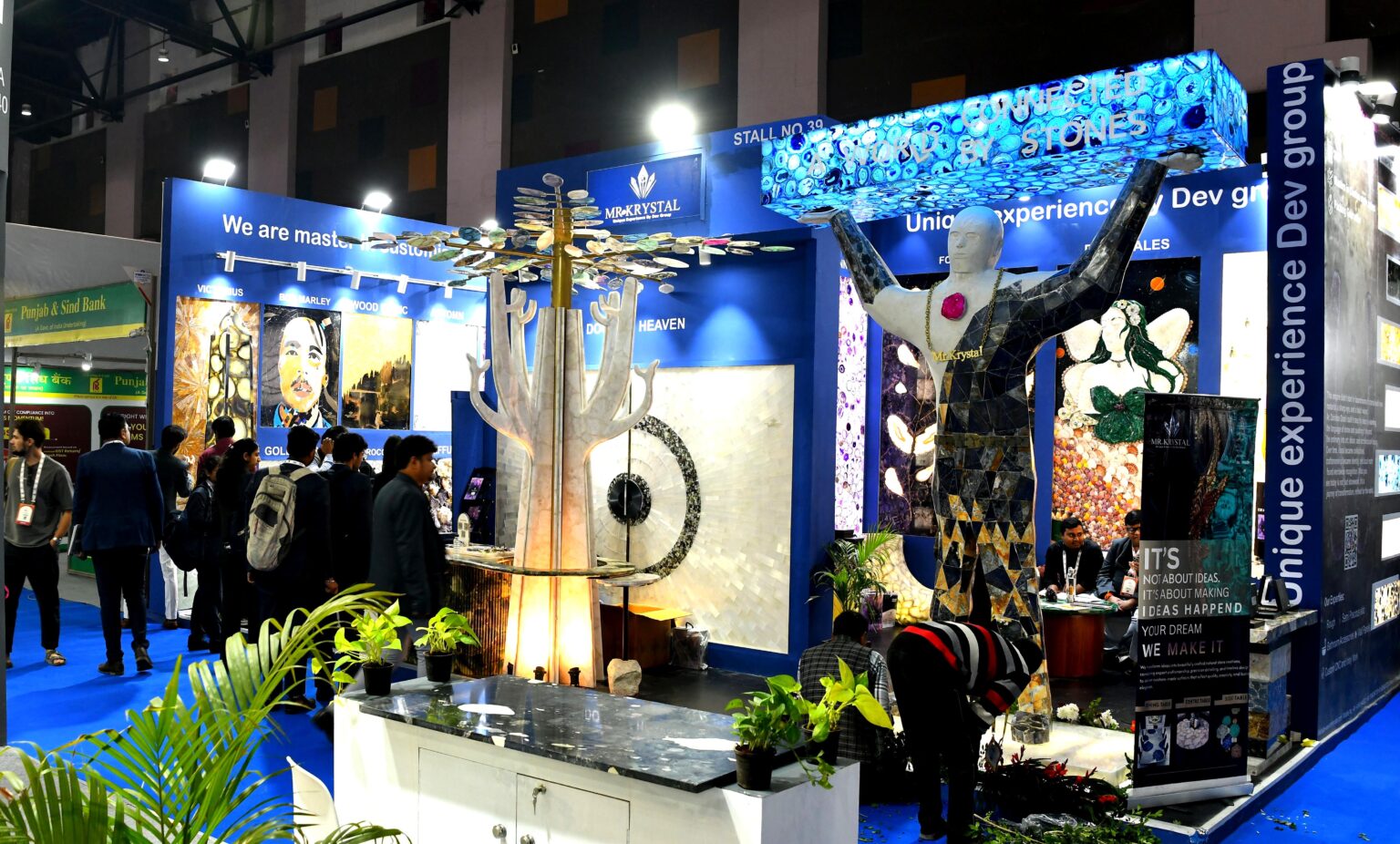 जेईसीसी में गुरूवार से शुरू हुए इंडिया स्टोन मार्ट—2026 में विभिन्न जिलों के विशिष्ट पत्थर उत्पादों को एक ही मंच पर प्रदर्शित किया गया।