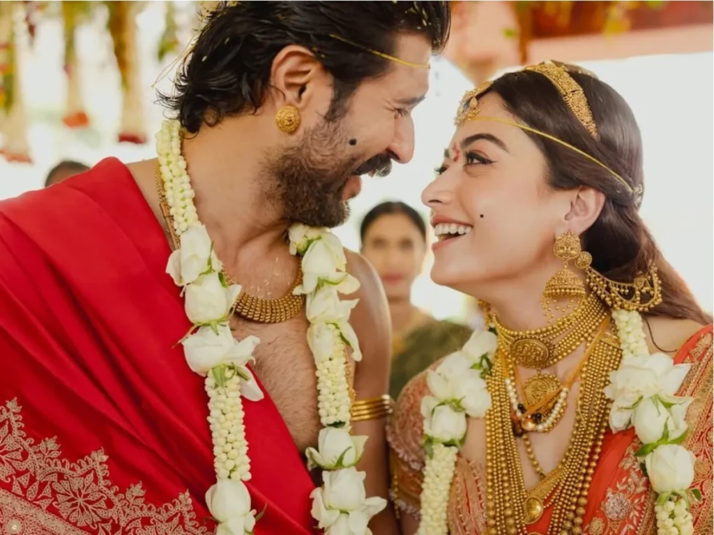 राजस्थान के खूबसूरत शहर उदयपुर में गुरुवार को फिल्मी दुनिया की सबसे चर्चित जोड़ी रश्मिका मंदाना और विजय देवरकोंडा शादी के बंधन में बंध गए। यह शाही शादी साउथ इंडियन परंपराओं और पारिवारिक रस्मों के साथ बेहद सादगी और भव्यता का संगम रही। दोनों सितारों ने सुबह तेलुगु और शाम को कोडवा रीति-रिवाज से सात फेरे लिए, जिससे यह शादी सांस्कृतिक विविधता की मिसाल बन गई।