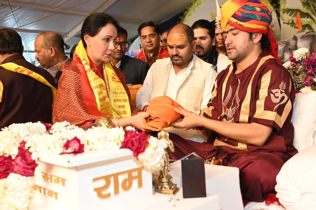 उप मुख्यमंत्री दिया कुमारी ने तीर्थराज पुष्कर की पावन धरा पर आयोजित तीन दिवसीय हनुमंत कथा में सहभागिता करते हुए बागेश्वर धाम सरकार के पीठाधीश्वर एवं प्रखर सनातन प्रवक्ता श्री धीरेंद्र कृष्ण शास्त्री का आत्मीय स्वागत एवं अभिनंदन किया तथा उनका आशीर्वाद प्राप्त किया।