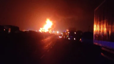 जयपुर जिले के दूदू क्षेत्र में मौखमपुरा के पास मंगलवार रात एक खौफनाक हादसा हुआ। एलपीजी सिलेंडरों से भरे खड़े ट्रक को एक केमिकल टैंकर ने जोरदार टक्कर मार दी। टक्कर लगते ही टैंकर के केबिन में आग लग गई, जो तेजी से ट्रक तक फैल गई। आग सिलेंडरों तक पहुंची तो एक के बाद एक करीब 200 गैस सिलेंडरों में विस्फोट हो गया। धमाकों की आवाज 10 किलोमीटर दूर तक सुनाई दी और कुछ सिलेंडर 500 मीटर दूर खेतों तक जा गिरे।