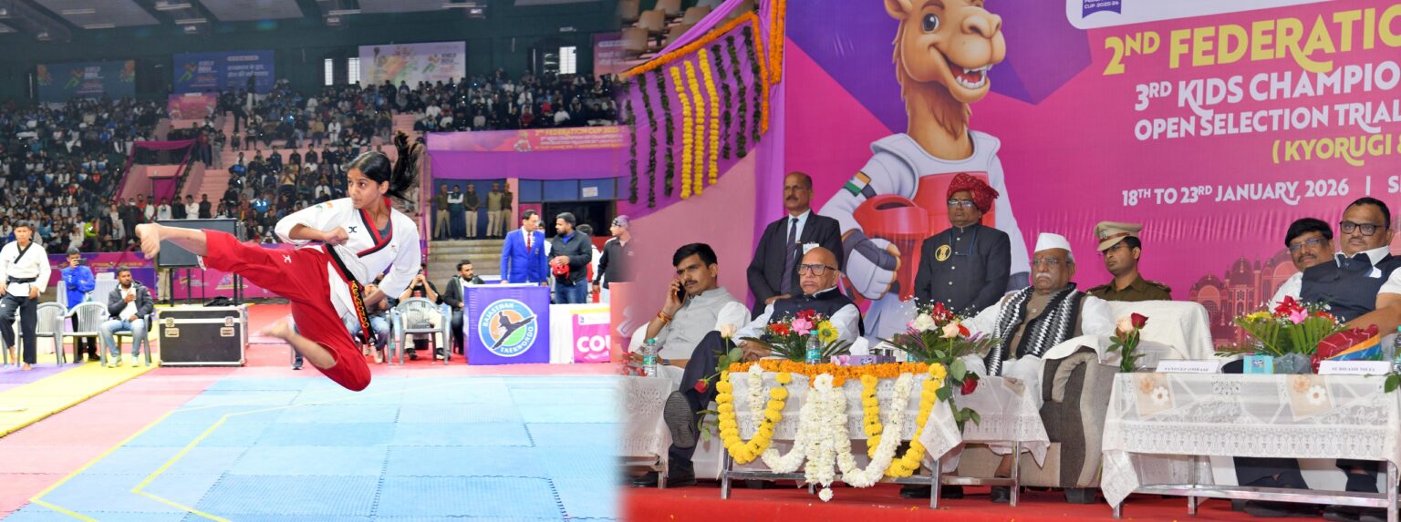 राज्यपाल हरिभाऊ बागडे ने बुधवार को एसएमएस स्टेडियम में “द्वितीय ताइक्वांडो फेडरेशन कप 2026” के डेमो मैच का शुभारम्भ किया।