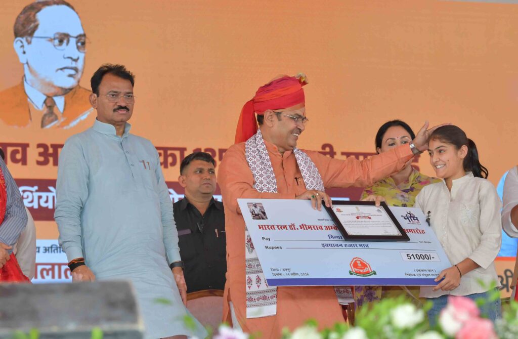 उन्होंने विशेष योग्यजनों को सहायक उपकरण एवं कन्यादान योजना के लाभार्थियों को राशि का वितरण किया। समारोह में मुख्यमंत्री अनुप्रति कोचिंग योजना के मेधावी विद्यार्थियों को सम्मानित भी किया गया। इसके अलावा मुख्यमंत्री ने नगरीय क्षेत्रों में 200 अंबेडकर ई-लाइब्रेरी स्थापित करने एवं अंबेडकर पीठ, मूंडला, जयपुर में अंबेडकर आवासीय कोचिंग केन्द्र की स्थापना की घोषणा भी की।