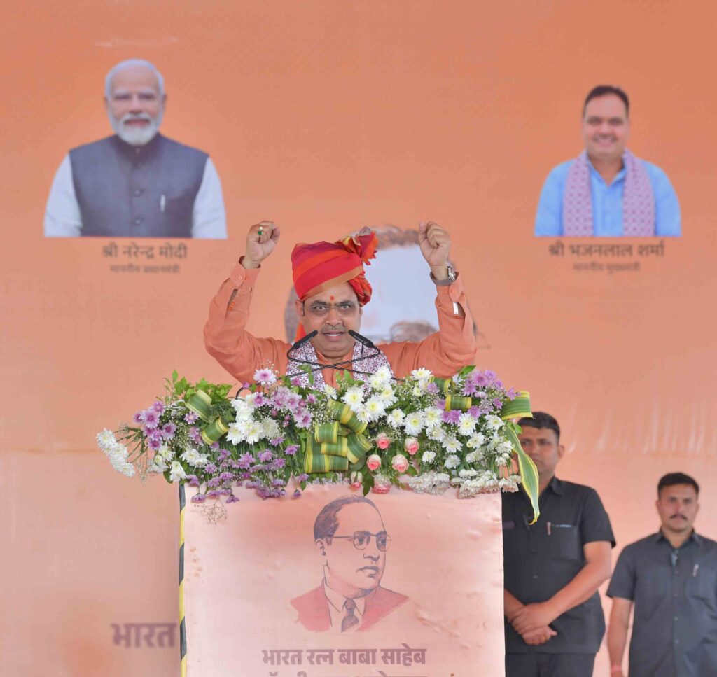 मुख्यमंत्री भजनलाल शर्मा ने कहा कि हमारी सरकार पिछड़े, वंचित एवं अंतिम पंक्ति के व्यक्ति तक विकास का उजियारा पहुंचाने एवं जीवन स्तर सुधारने के लिए प्रतिबद्ध है। डबल इंजन सरकार बाबा साहेब डॉ. भीमराव अंबेडकर के सामाजिक न्याय के आदर्शों पर चलते हुए सबका साथ, सबका विकास, सबका विश्वास और सबका प्रयास का मंत्र पर काम कर रही है। हमारी सरकार बाबा साहेब के सपनों को पूरा करते हुए समाज के सभी वर्गों को सामाजिक, आर्थिक एवं राजनीतिक रूप से सशक्त एवं सक्षम करने का कार्य कर रही है। उन्होंने युवाओं का आह्वान करते हुए कहा कि बाबा साहेब के सिद्धांतों और आदर्शों को आत्मसात करते हुए राष्ट्र विकास में योगदान दें।