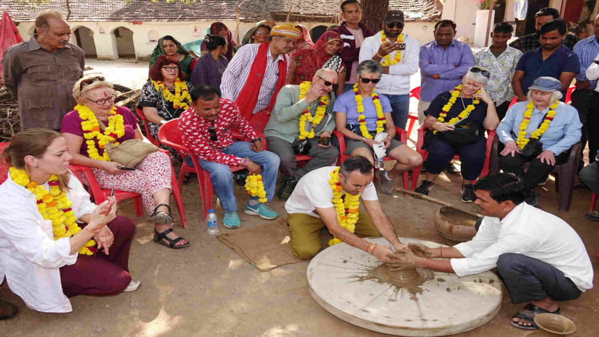 जैसे ही काफिला बूंदी की संकरी गलियों और हरे-भरे खेतों के बीच से गुज़रा, विदेशी मेहमानों ने अपने कैमरों में ग्रामीण जीवन के अनोखे दृश्य कैद किए। गांव पहुंचने पर ढोल-नगाड़ों और लोकगीतों के बीच उनका भव्य स्वागत किया गया। महोत्सव समिति सदस्य राजकुमार दाधीच ने बताया कि ठीकरदा गांव की महिलाओं ने सैलानियों को मांडणा बनाने, चाक पर मिट्टी के बर्तन गढ़ने और आंगन लीपने की कला सिखाई। विदेशी मेहमानों ने भी पूरे उत्साह से मिट्टी में हाथ आजमाया।