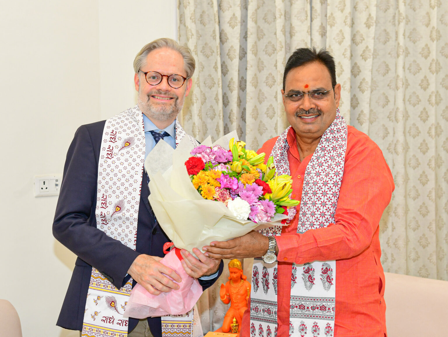 मुख्यमंत्री भजनलाल शर्मा से मंगलवार को डेनमार्क के राजदूत रासमस एबिल्डगार्ड क्रिस्टेंसन ने मुख्यमंत्री निवास पर मुलाकात की। मुख्यमंत्री से यह उनकी शिष्टाचार भेंट थी।