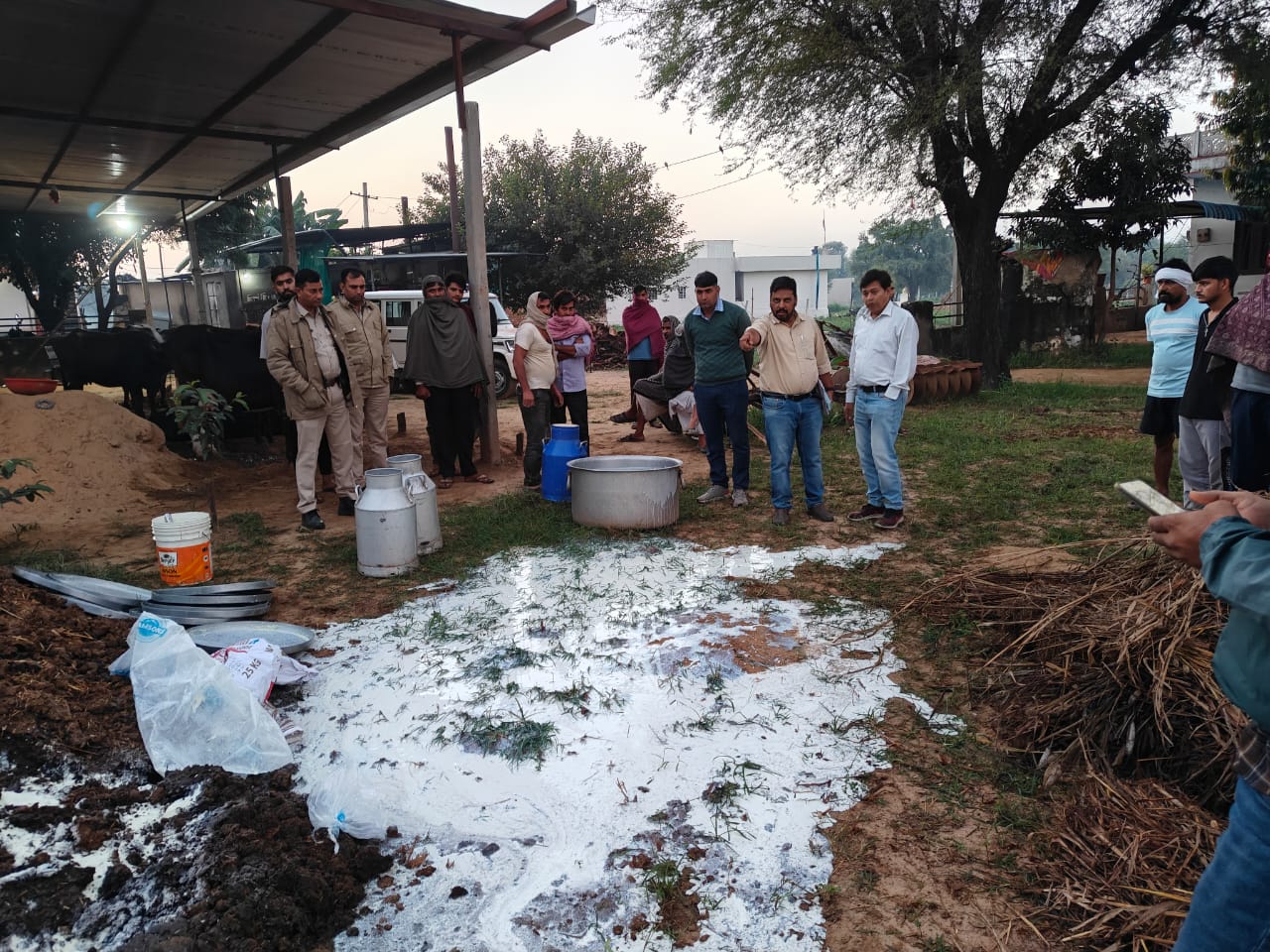 आयुक्त खाद्य सुरक्षा एवं औषधि नियंत्रण राजस्थान डॉ. टी. शुभमंगला ने बताया कि क्षेत्र में लगातार चल रही संदिग्ध मिलावटी मावे की शिकायतों के मद्देनजर पुलिस विभाग एवं आयुक्तालय खाद्य सुरक्षा की अलग-अलग टीमों का संयुक्त जांच दल का गठित किया गया। उन्होंने बताया कि सूचना के आधार पर अतिरिक्त आयुक्त श्री भगवत सिंह, संयुक्त आयुक्त डॉ विजय शर्मा एवं मुख्य चिकित्सा स्वास्थ्य अधिकारी जयपुर प्रथम डॉ रवि शेखावत के निर्देशन एवं पुलिस प्रशासन के सहयोग से चीथवाडी गांव में मध्यरात्रि लगभग 2 बजे पहुंचकर 15 मावा निर्माण ईकाइयों का औचक निरीक्षण किया गया। निरीक्षण के दौरान 20 मावा एवं दूध के नमूने लिये गये। 2 निर्माण ईकाइयों पर मावा में मिलावट करने वाली स्कीम मिल्क पाउडर, वनस्पति एवं इनसे बने लगभग 500 किलोग्राम मिलावटी दूध एवं मावे को मौके पर नष्ट करवाया गया।