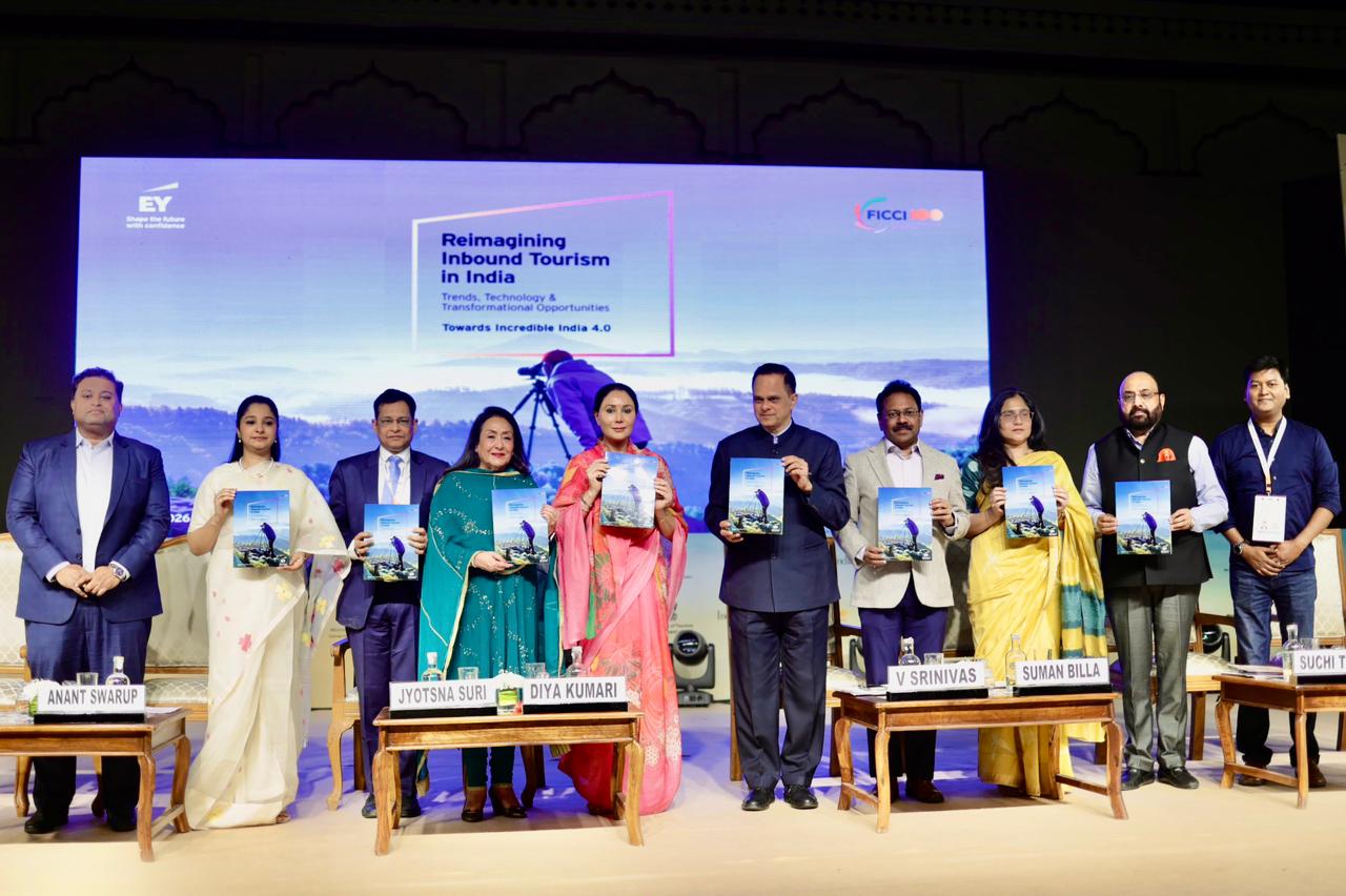 उद्घाटन सत्र के दौरान अतिथियों द्वारा ‘रीइमेजनिंग इनबाउंड टूरिज्म इन इंडिया – ट्रैंड्स, टेक्नोलॉजी एंड ट्रांस्फॉर्मेशनल अपॉर्च्यूनिटीज टूवर्ड्स इन्क्रेडिबल इंडिया 4.0’ थीम पर फिक्की-ईवाय नॉलेज पेपर का विमोचन भी किया गया। कार्यक्रम में राजस्थान सरकार, पर्यटन, कमिश्नर, रुक्मणी रियार और फिक्की राजस्थान स्टेट काउंसिल के को-चेयरमैन सुरेंद्र सिंह शेखावत भी उपस्थित रहे।