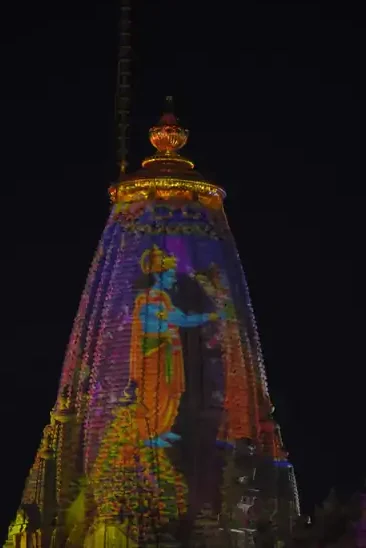 लेजर रोशनी के साथ मंदिर की नक्काशी, शिखर और गर्भगृह का बाहरी हिस्सा अद्भुत आभा से चमक उठा। लेजर शो के आयोजन से ठीक पहले दिनभर मंदिर में तैयारियों का दौर जारी रहा।इस बड़े कार्यक्रम की तैयारियां पूरी होने के बाद एक रिहर्सल की गई, जिससे भक्तों के लिए एक अद्भुत नजारा बन गया।