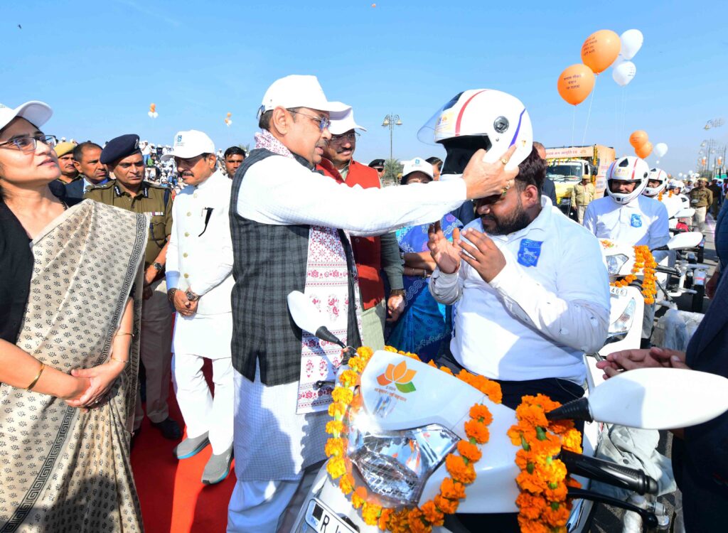 मुख्यमंत्री भजनलाल शर्मा ने कार्यक्रम में सड़क सुरक्षा जन-जागृति रथों को हरी झण्डी दिखाकर रवाना किया। उन्होंने 500 ऑटोरिक्शा को भी फ्लैग ऑफ किया। ये सभी वाहन विभिन्न क्षेत्रों में जाकर आमजन को सड़क सुरक्षा के लिए जागरूक करेंगे। श्री शर्मा ने इस अवसर पर दिव्यांगजनों को हेलमेट वितरण किया तथा व्यवसायिक वाहनों पर रिफ्लेक्टिव टेप लगाई।